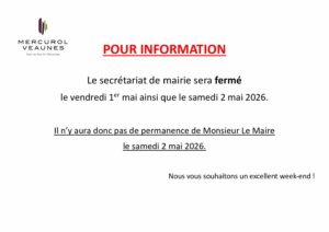 La mairie sera fermée exceptionnellement le vendredi 1er mai et le samedi 2 mai 2026. Il n'y aura donc pas…