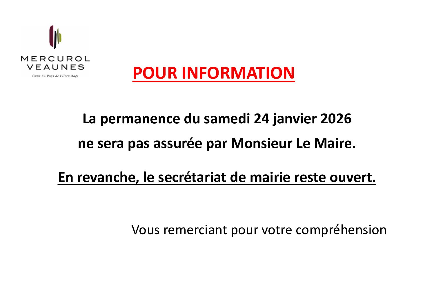 La permanence du samedi 24 janvier 2026 ne sera pas assurée par Monsieur Michel BRUNET. En revanche le secrétariat de [...]