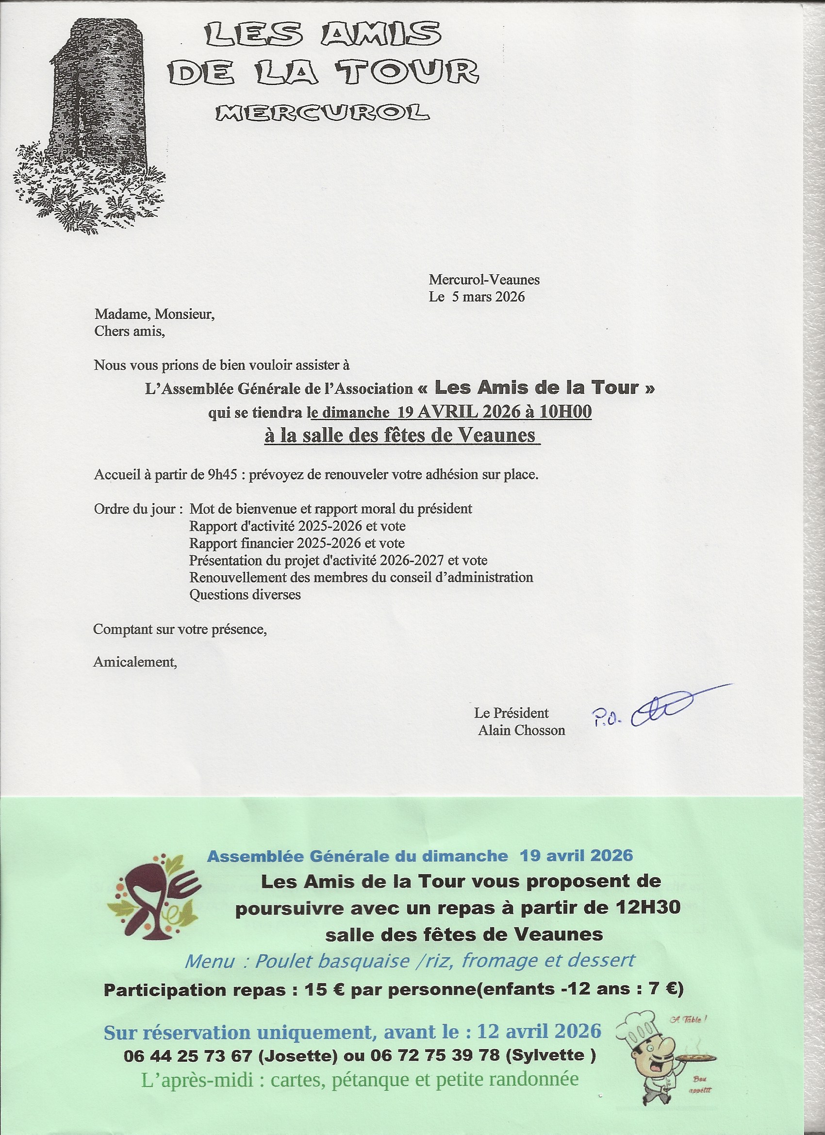 19 avril - 10h00 - 14h00Assemblée générale des Amis de la Tour