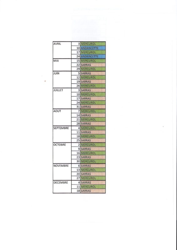 Un calendrier de collecte a été mis en place comme indiqué dans le tableau