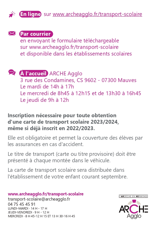 Retrouvez toutes les informations sur le transport scolaire sur le site d’ARCHE AGGLO