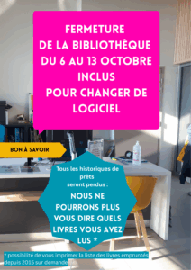 La bibliothèque sera exceptionnellement fermée cette semaine pour changement de logiciel.