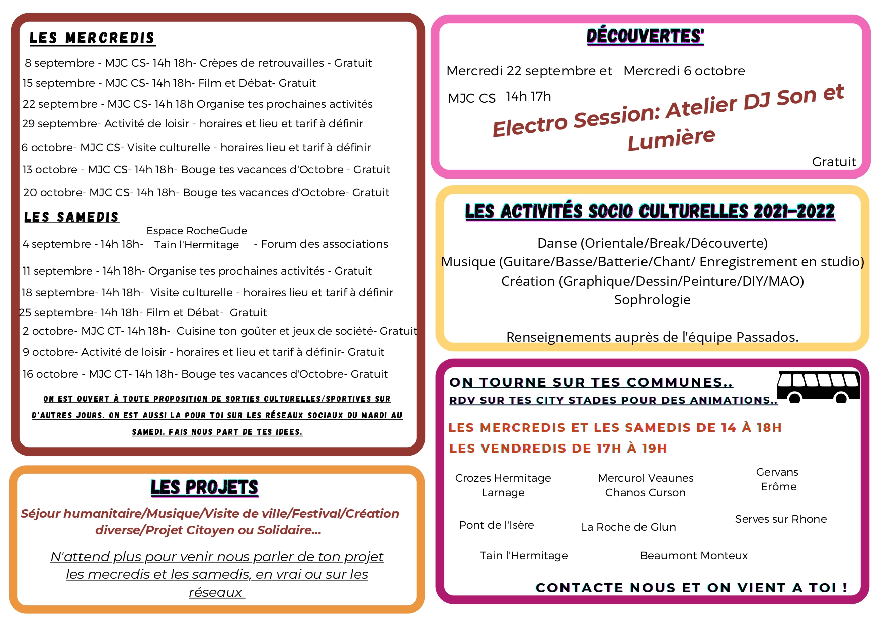 PassAdos rouvre ses portes cette semaine, vOICI le programme jusqu’aux vacances de la Toussaint /